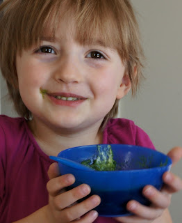 This makes a great meal with sandwiches and my kids love it, here are pictures of my two youngest, they practically drank theirs and I really did drink mine.